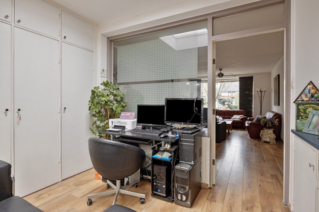Grenzend aan de woonkamer is een fijne, extra binnenruimte die te gebruiken is als kantoor of als speelkamer.