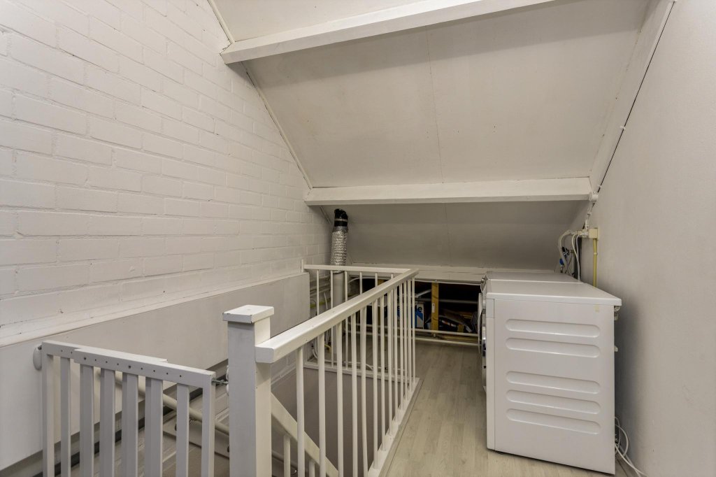 Via een vaste trap naar de tweede verdieping kom je tot slot bij een ruime overloop met ruimte voor een wasmachine, droger en is er veel opslagruimte. Op deze tweede verdieping bevindt zich dan uiteindelijk de ruime vierde slaapkamer met een kunststof dakkapel. Aan ruimte geen gebrek!