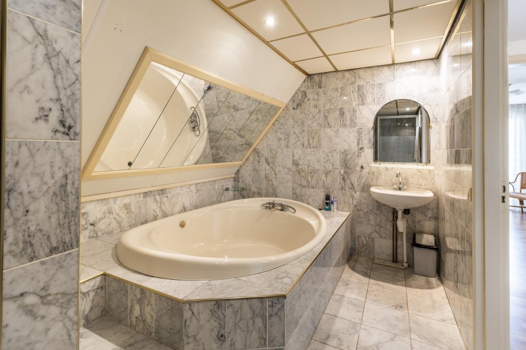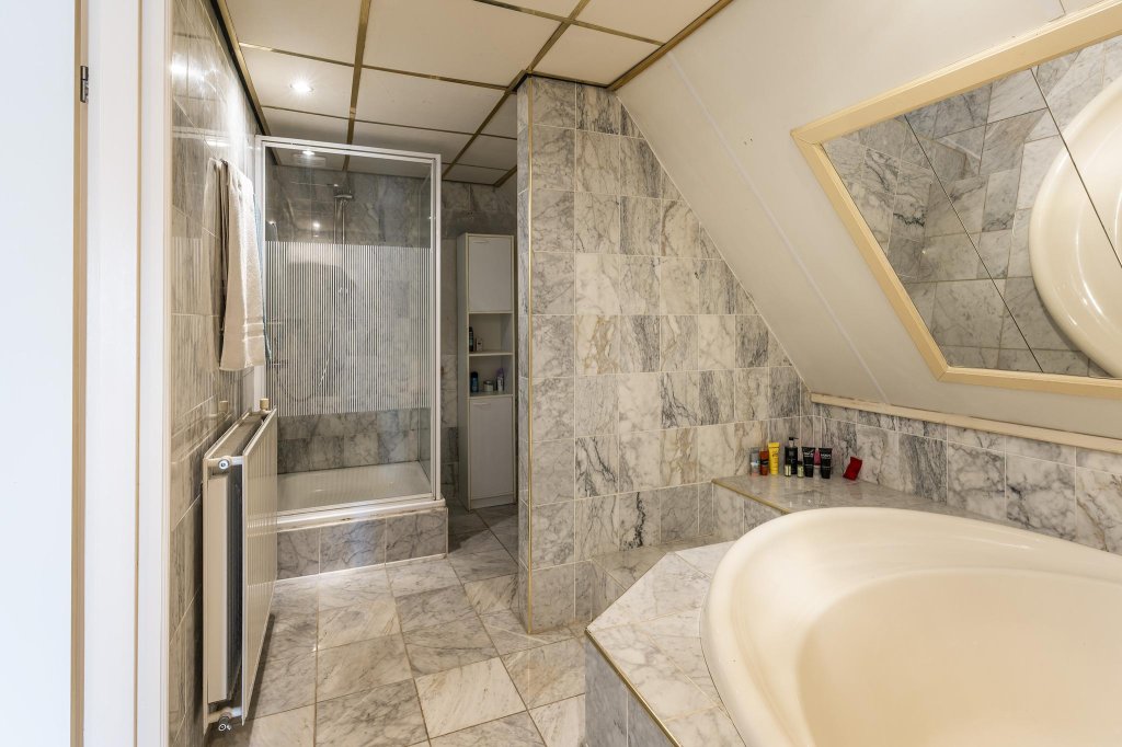 Overloop met 3 ruime slaapkamers, waarvan 1 met doorloop naar groot balkon en 2 met vaste kasten, badkamer uitgevoerd in marmer met groot 2-persoons bad, douche/stoomcabine wastafel en toilet, C.V. ruimte. Vlizotrap naar...
