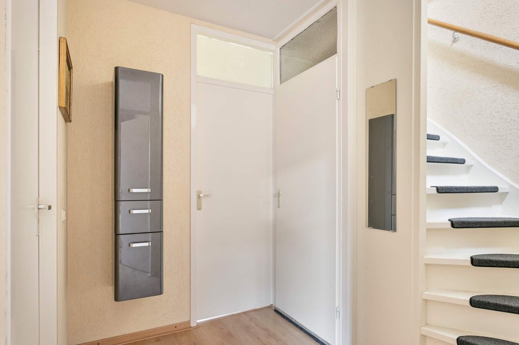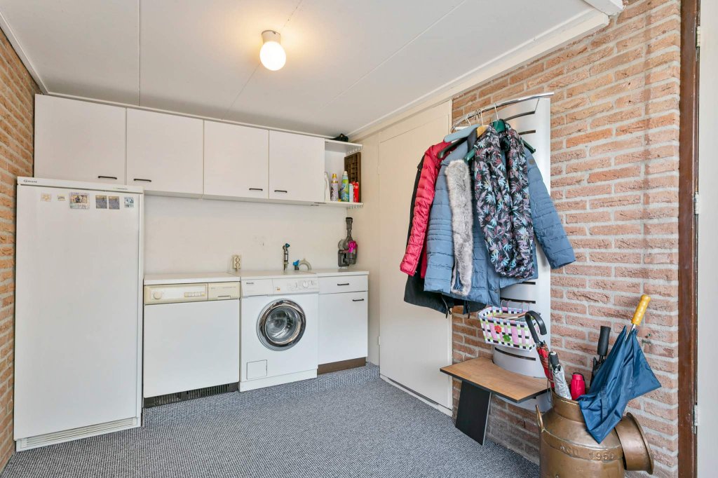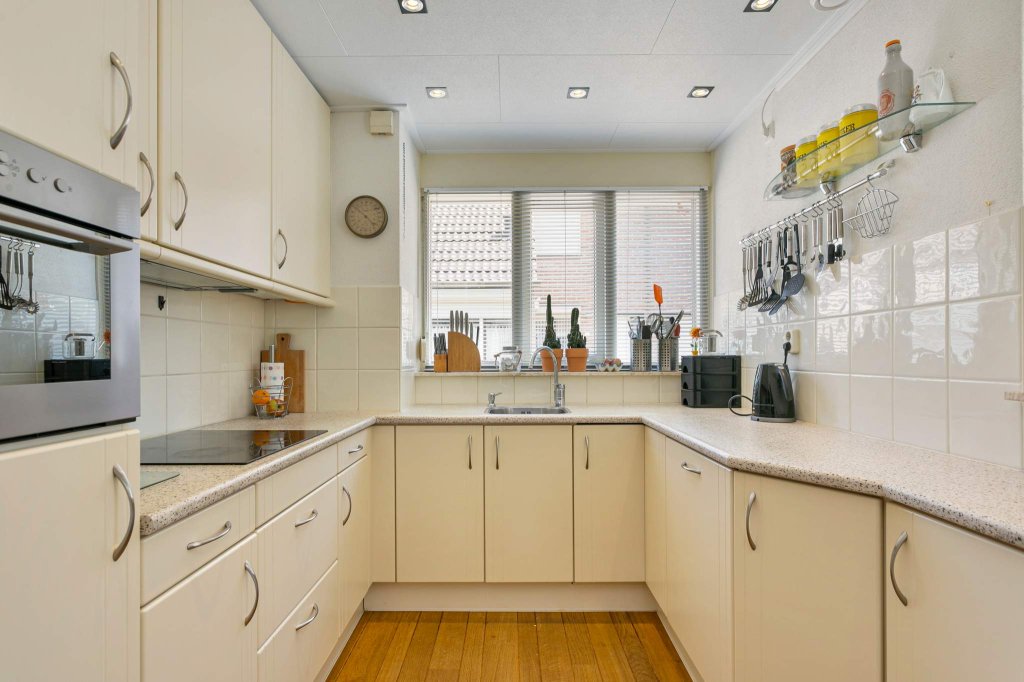 Entree, hal met toegang tot het toilet met fontein, ruime woonkamer voorzien van een eikenvloer, ruime keuken voorzien van diverse inbouwapparatuur o.a. inductiekookplaat, vaatwasser, combimagnetron, afzuigkap en een koelkast, aan de achterzijde een ruime berging voorzien van wasmachine aansluiting en toegang tot de mooie sfeervolle tuin op het westen.