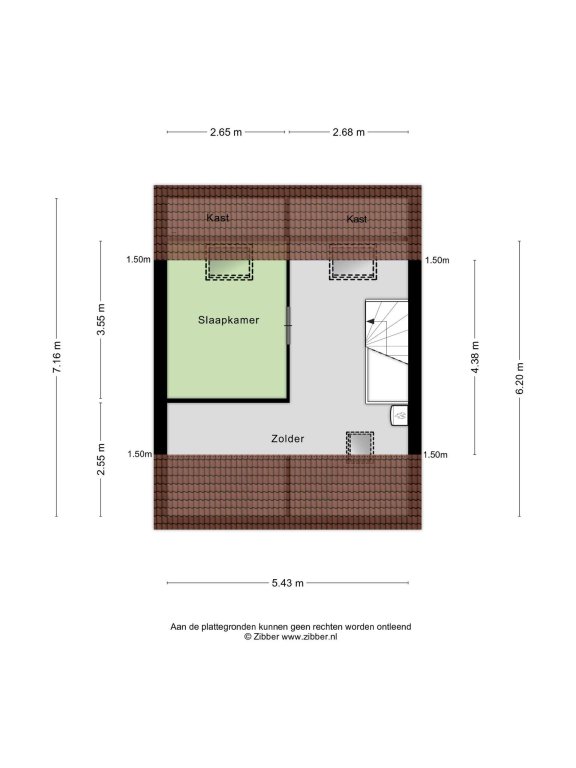 Ruime zolderverdieping voorzien van een slaapkamer