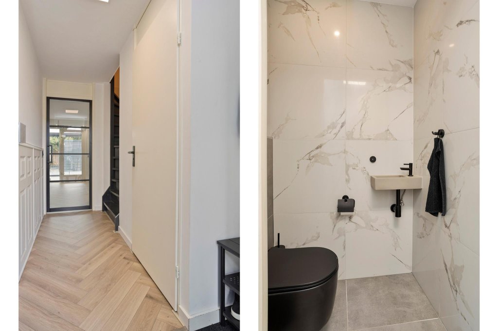 - Moderne luxe toiletruimte (2021), voorzien van hangend toilet en fonteintje.