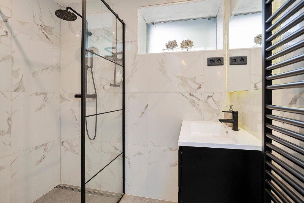 - Moderne luxe badkamer (2021), voorzien van inloopdouche, wastafelmeubel en vloerverwarming.