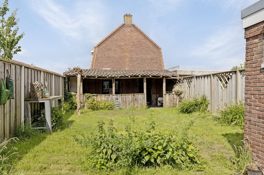 De woning heeft een diepe achtertuin welke op westen is gepositioneerd met een grote overkapping en garage achterin.