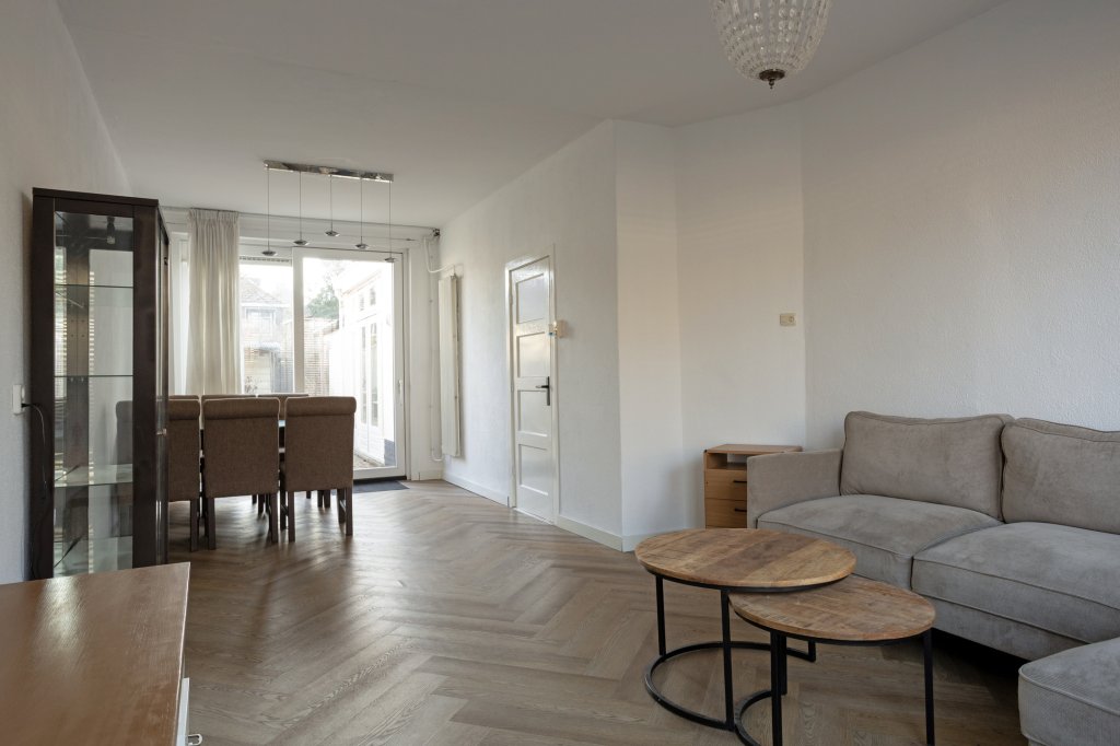 Bij binnenkomst valt meteen de vele en prettige lichtinval op. De woonkamer vormt het hart van het huis: een uitnodigende plek waar je heerlijk kunt ontspannen, dineren met vrienden of kunt genieten van een rustige avond. De open verbinding met de keuken zorgt voor een ruimtelijk gevoel en maakt het huis ideaal voor wie graag kookt en tegelijkertijd ook betrokken wil blijven bij het gezelschap in de kamer. De keuken zelf is nog origineel en is aan de achterzijde uitgebouwd. De keuken heeft hierdoor extra veel lichtinval verkregen. Er is goede mogelijkheid tot verdere uitbreiding van deze keuken.