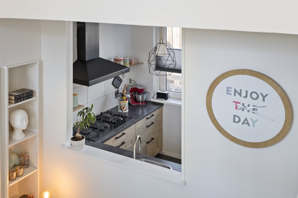 De verrassing van de woning is dat ze een splitlevel herbergt, waardoor er een speelse, functionele en niet alledaagse indeling is. Daarnaast is de woning gunstig gelegen ten opzichte van het stadscentrum, cultureel Roombeek, ontsluiting richting de snelweg A1 en het groene buitengebied.